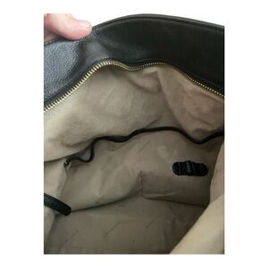 The Brahmin Black Leather Hobo Bag features a casual, slouchy design crafted from soft, pliable leather. Its medium size and shoulder strap make it perfect for everyday use, while the minimalistic style emphasizes a classic, timeless appeal. Crafted from smooth, high-quality leather, this spacious handbag is perfect for everyday use or a night out. The single shoulder strap features stylish knotted details on both ends, adding a unique touch to its minimalist design.