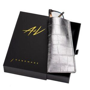 Sleek Calfskin Glasses Case – Alligator Pattern Craftsmanship - Silver Ray