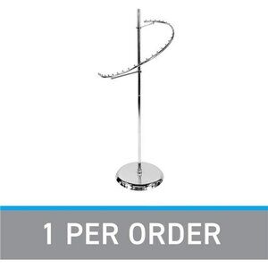 Sleek Chrome Design: Our spiral closet rack boasts a sleek chrome design, adding a touch of elegance to any retail space. Ideal for retail clothing & garment racks, this rack is perfect for showcasing your merchandise in a stylish manner. 63"H x 18" dia. base