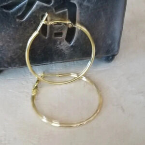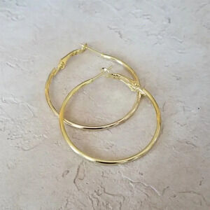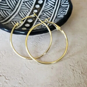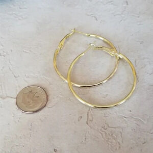 Sleek Gold Tone Large Hoop Earrings 40mm 1.6" Leverback Minimalist Classic