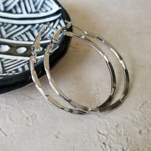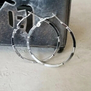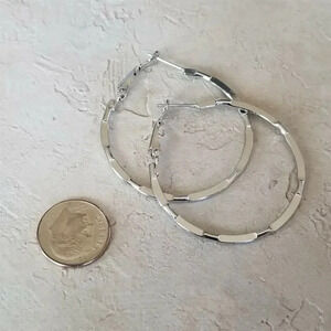 Sleek Mid Century Style Silver Tone Round Hoop Earrings 40mm 1.6" Long Leverback