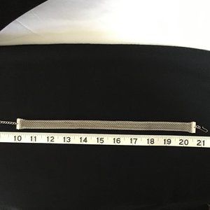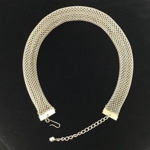 This Napier silver tone mesh flex choker/necklace is 10 1/2" long and 1/2" wide.