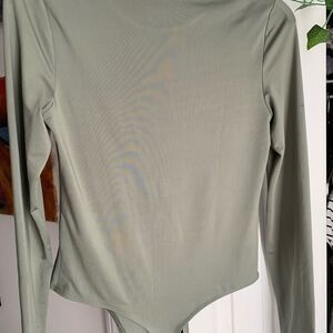 Elevate your style with this sleek olive green bodysuit. Perfect for any occasion.