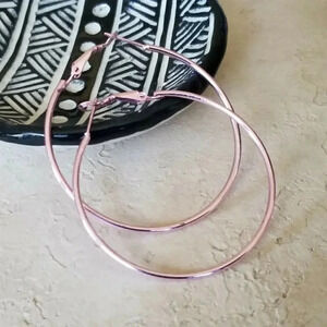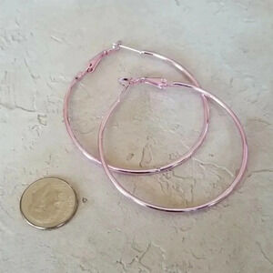 Sleek Pink Large Hoop Earrings 50mm 2" Leverback Minimalist Classic