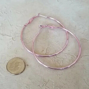 Sleek Pink Large Hoop Earrings 50mm 2" Leverback Minimalist Classic