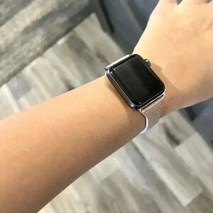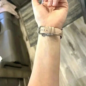 Upgrade your Apple Watch with a sleek and stylish light pink leather band. This high-quality band adds a touch of sophistication to your watch while remaining comfortable to wear. The slim design and soft leather make it perfect for everyday use. It's compatible with Apple Watch sizes 42mm, 44mm, 45mm, and 49mm.