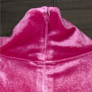 This sleek pink velvet dress features a sleeveless design with elegant ruching. Ideal for making a statement at any event.