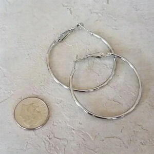 Sleek Silver Tone Large Hoop Earrings