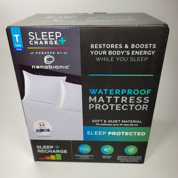 Offered here is a Sleep Charge Nanobionic Waterproof Mattress Protector - Up to 15" Deep Fitted - TWIN SIZE - White