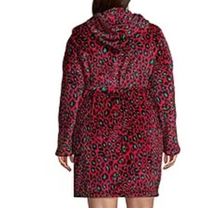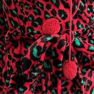 🔥 Sleep Chic NWT Plush Short Robe XXL Red Green Animal Print
