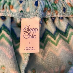 Sleep Chic Womens Pajama Pants L Blue Green Chevron Print Lounge Sleepwear