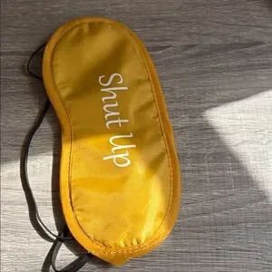 It’s a yellow Sleep Mask that says “Shut Up” never has been worn was given as a gift. I know a lot of people who use them I just don’t. It’s in excellent condition no flaws or damages. Super cute can also be given as a gift. Will ship within 1-2 days.