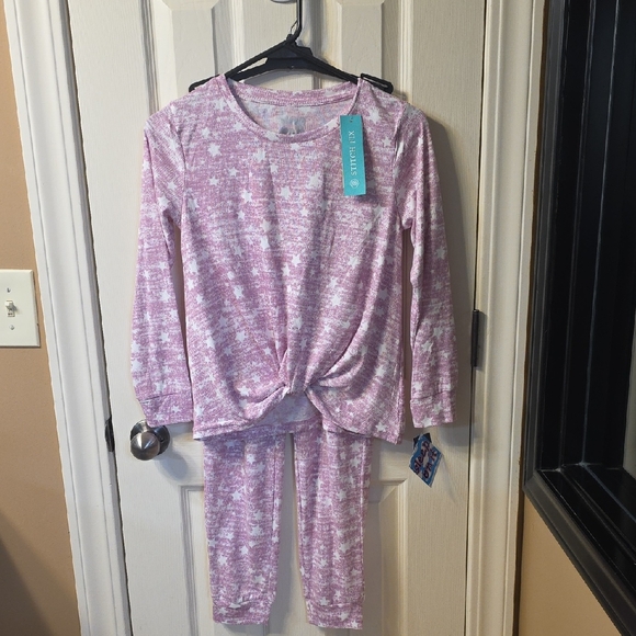 Adorable pink pajama set with star pattern. Soft and comfortable for bedtime.