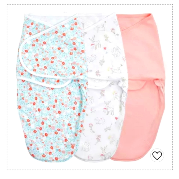 4 swaddle wraps. The set of 3 are 0-3 months Aden + Anais Essentials; the pink is unused and the other two were tested out, but my baby didn't like them, so they've been washed once. The single is SwaddleMe 0-3 months also washed once.