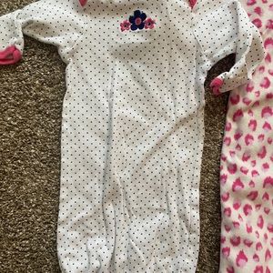 3 sleep sacks! The middle one is size 0-9 and it’s Child of Mine brand. Great condition! The two on the sides are size 0-6 months. Also amazing condition.