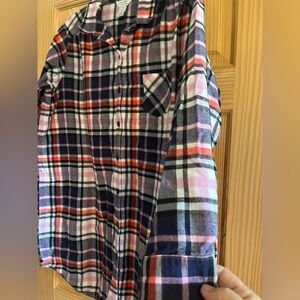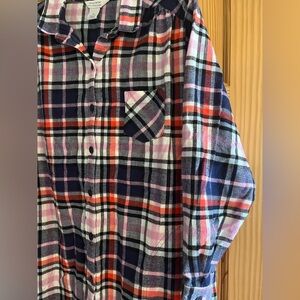 Sleep Sense Blue Pink Red Plaid Pajama Button Down Top Size XL