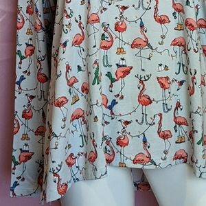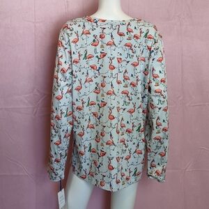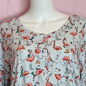 Sleep Sense long sleeve light blue Christmas pajama top with flamingos. New with tags. Refer to photos for measurements. Size XL is pictured, but has been sold. Size Large is available for purchase