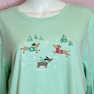 Sleep Sense women's long sleeve crew neck mint green Wiener Dog Print Christmas pajama top. New with tags. Refer to photos for measurements