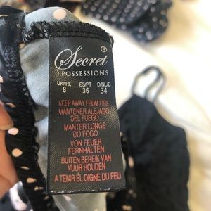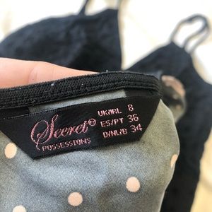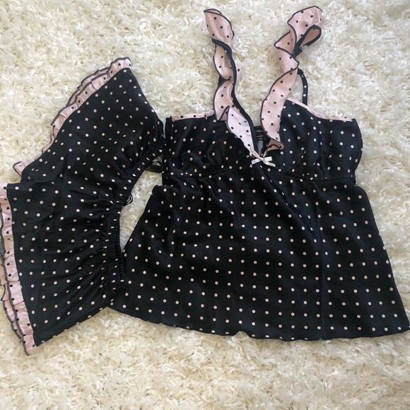 Very cute sleepwear. 💯 % polyester. Excellent condition. No longer fits me now that Im having a baby.