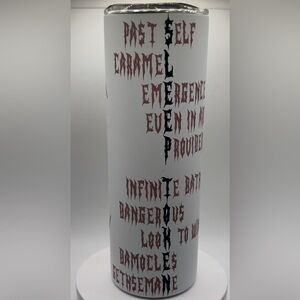 🖤🎶 Show off your love for Sleep Token with this bold and beautifully designed tumbler featuring song titles and iconic dark imagery inspired by the band. Perfect for fans who want to bring their favorite music everywhere they go.