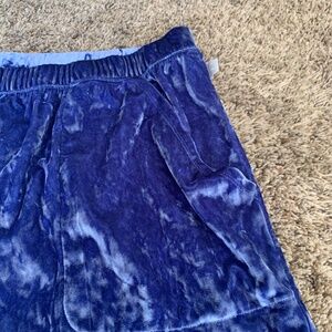 In good pre- owned condition. It is the color blue, but because of the crushed velvet it kinda gives a purple hue. Pretty and comfortable. Size is 26/28.