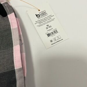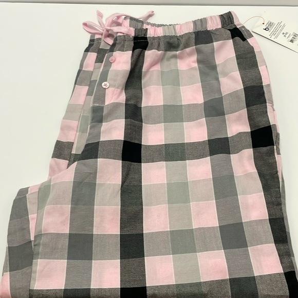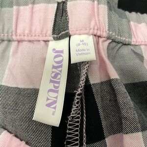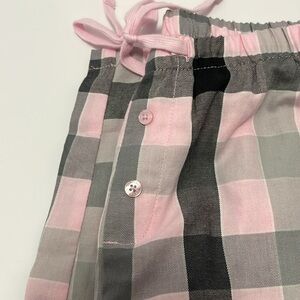 Pink black and gray flannel like pjs. Has pockets. Tie and waist band Wide leg Size m 8-10
