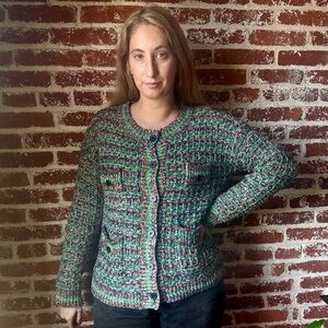 Sleepat11 funky multi color cardigan with functional buttons