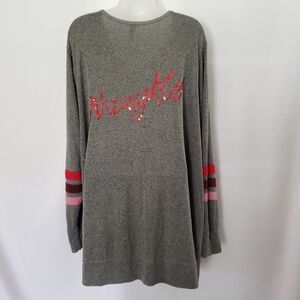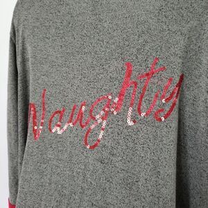 Excellent gently preowned condition super soft gray pj shirt with "nice" on front and "naughty" on back with sequins