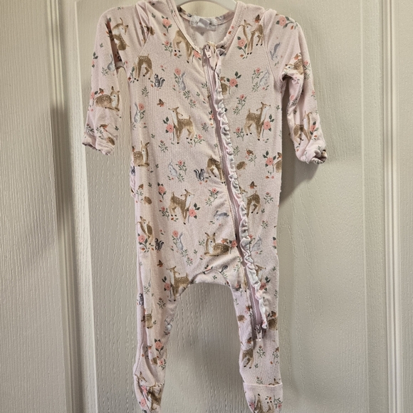 Angel dear 0-3M baby Sleeper with fold over hand mittens and ruffle button Used condition