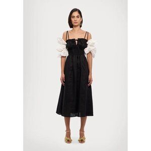 Sleeper Arle Ruffled Linen Midi Dress Black & White Womens Size Large