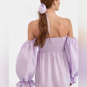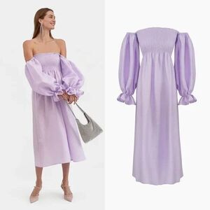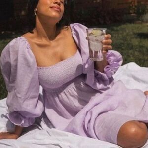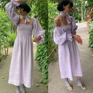 Sleeper Atlanta Linen Smocked Midi Dress Lavendar Lilac Puff Sleeve Womens XL