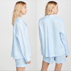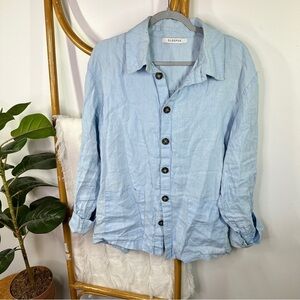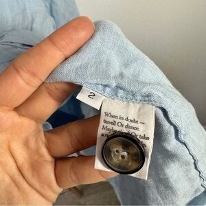 Sleeper baby blue long sleeve button up front linen blouse size 2, minor mark on the collar see last photo. Size 2 S/M