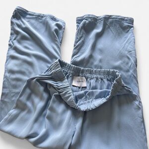 Luxury lounge ✨ Sleeper pajama pants in baby blue viscose. Cropped hem with snap detail for feather attachments (feathers not included). Size Small, used good condition.