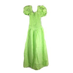 Sleeper Belle Linen Smocked Bodice Midi Dress Medium Green