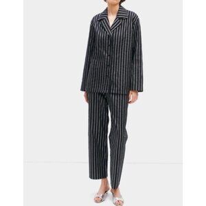 Sleeper Black Silver Stripe Womens Medium M Luxury Cotton Pajama Set $420