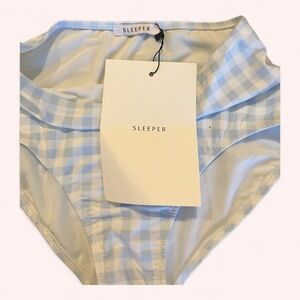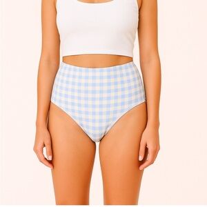 Sleeper Blue White Gingham High Waisted Full Coverage Bikini Bottoms NWT Size M