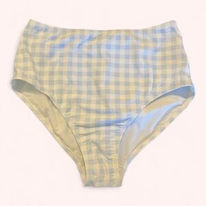 Brand new with tags! These high-waisted bikini bottoms feature a sweet blue and white gingham print and offer flattering full coverage. The retro-inspired fit hugs in all the right places while keeping things comfortable and cute. Size M. Never worn—perfect for your next sunny getaway! ☀️