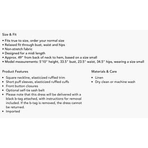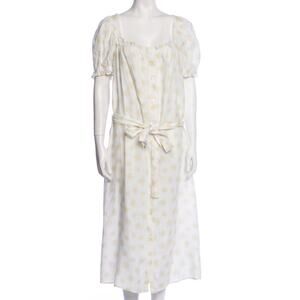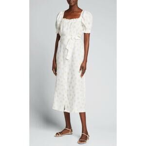 Sleeper Brigette Daisy Print 100% Linen Square Neck Midi Dress XL
