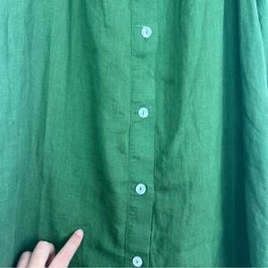 Sleeper | Brigitte 100% Linen Mini Dress Puff Sleeves Button Down Olive Green S