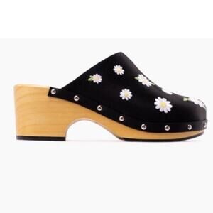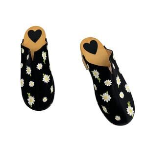 Sleeper Daisy Matilda Silk Daisy Wooden Clogs Heels Black Size 39