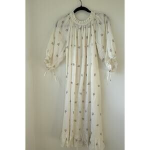 The Sleeper Linen Flower Dress in kids size 4 is a stylish and comfortable loungewear option for young girls. Made from 100% linen, this ivory dress features beautiful floral designs, adding a touch of charm to any summer wardrobe. With a midi length, this dress is perfect for both playtime and special occasions, making it a versatile and lovely addition to any little girl's closet.