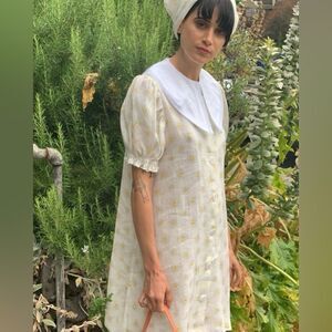 Gorgeous sleeper Marie linen collared dress in daisies. Never been worn, with tags attached. 100% linen. Made in Ukraine. Comes with removable collar and matching scarf.