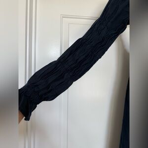 Sleeper Michelin dress size XL navy linen balloon sleeve romantic midi