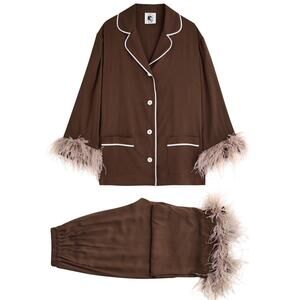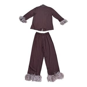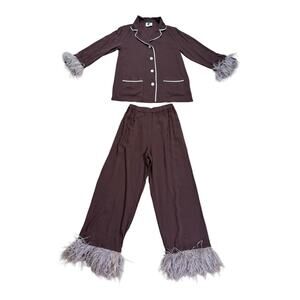 Sleeper Party Feather Trimmed Pajama Set Small Chocolate Brown