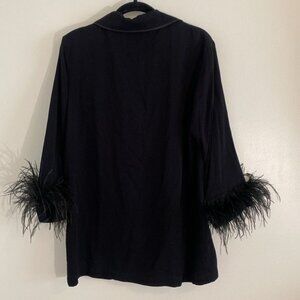 Sleeper Party Pajamas Long Sleeve Button Down Top with Feathers in Black Large