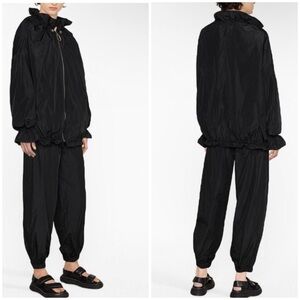 Sleeper's Costume Sportive tracksuit is a modern take on athleisure. While presented with a recognisable drawstring neck and elasticated waist, it features a ruffled collar and cuffs to create a playful, updated silhouette.