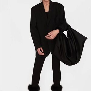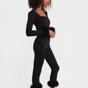 Elegant black ensemble with luxurious fur details. Ideal for a chic appearance.