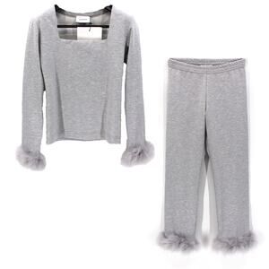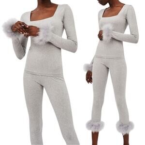 Sleeper Weekend Chic Pajama Set NEW Grey 2 Pc Feather Trim Matching Set Size L