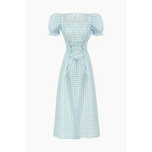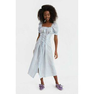Sleeper Womens Marquise Corset Linen Dress XL Blue Gingham