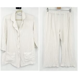 Sleeper Womens Sleep Lounge Button Up Shirt Top & Pants Pajama Set in White. Size Extra Large.